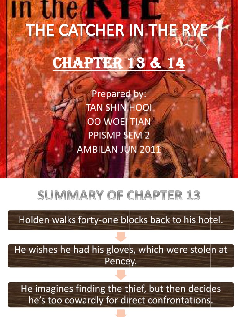 Web The Catcher in the Rye Chapter 13 Summary Analysis. Web In the thirteenth chapter of the JD. Web As the manager of the fencing team he accidentally left all of their equipment on the subway causing the team to miss the meet.